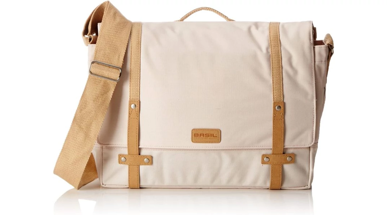 BASIL PORTLAND-MESSENGER, kerékpáros irodai táska, minőségi pamut, mosható papír részletek (mint a farmercímkék anyaga), kockás bélés, párnázott 15" laptop rekesz, belső- és külső zsebekkel, vállpánttal, esővédővel, fényvisszaverővel, 16L-es összecsukva /20L-es kinyitva, sötétkék vagy sötétpiros színben
