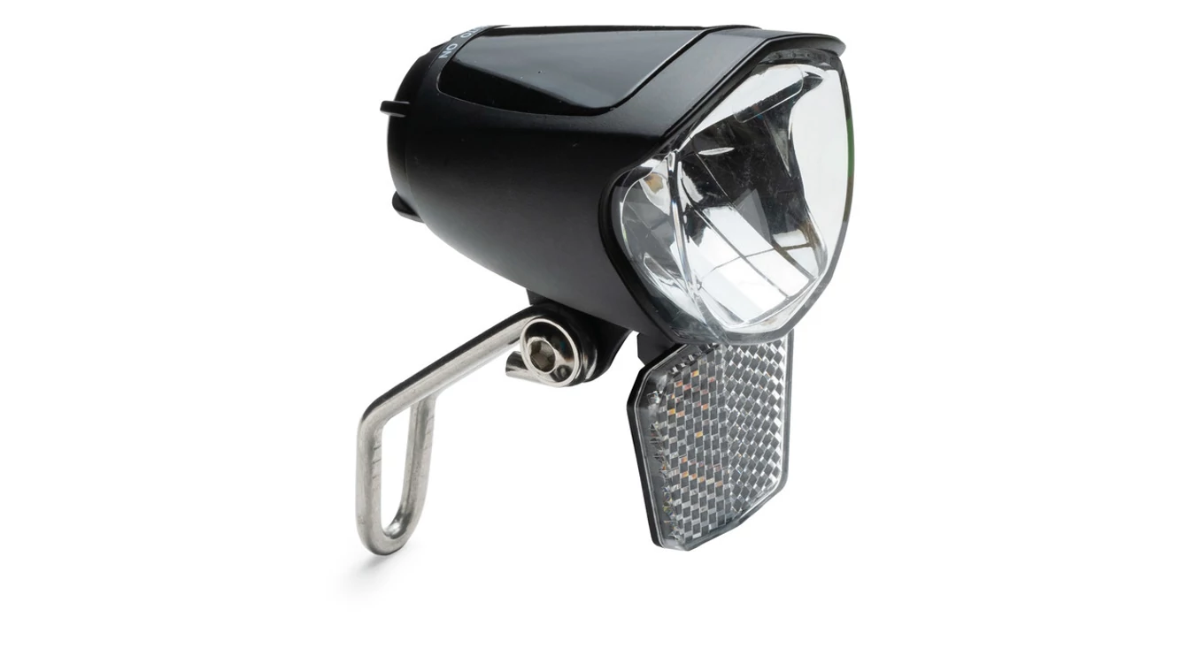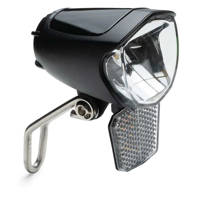 Dinamós első lámpa. LED-es első lámpa, 6V/2,4-3W-os dinamóhoz. Automatikus ki-bekapcsolás, állóhelyzeti fény funkcióval.