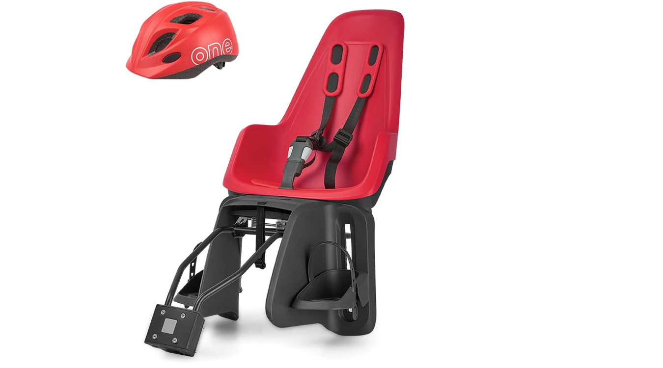 Bobike hátsó gyerekülés ONE maxi + in-mold gyereksisak szettben, vázra és csomagtartóra szerelhető, eper piros S