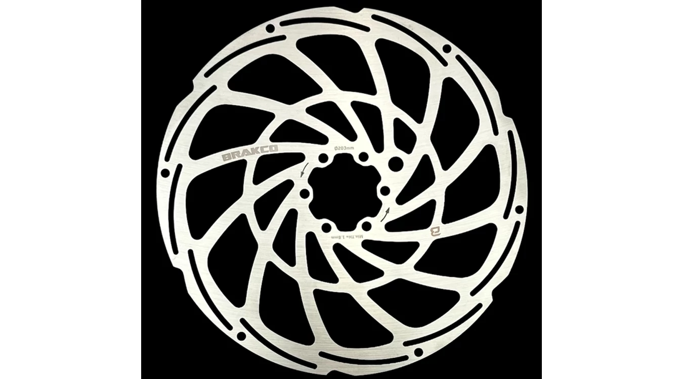 BRAKCO kifejezetten E-bikeokra optimalizált, nagy szilárdságú, jó hőelvezetésű, extra vastag féktárcsa. Megerősített kialakításának köszönhetően az elektromos kerékpárok igényei szerinti maximális teljesítmény és biztonság jellemzi.
