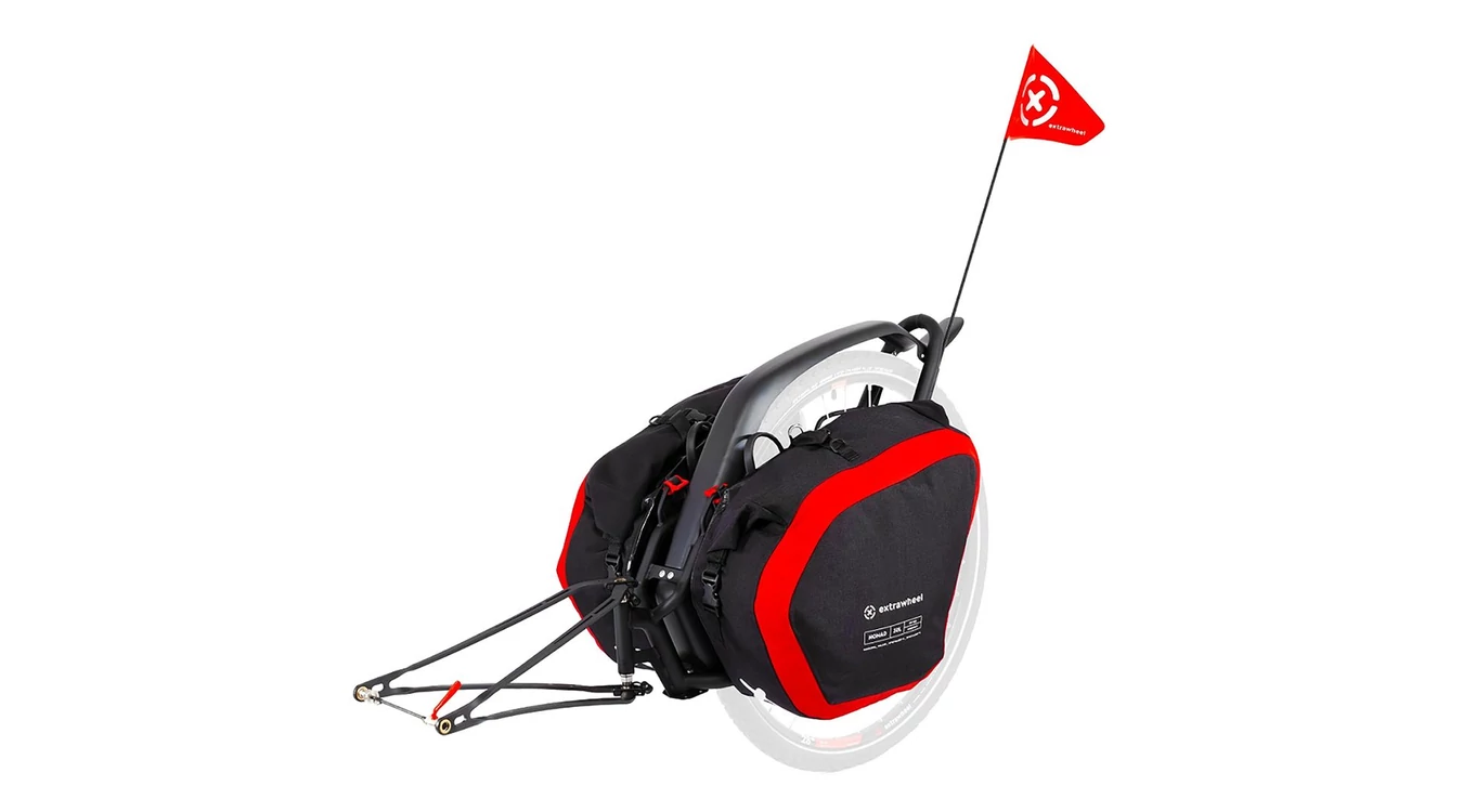 Polisport gyerek utánfutó max 2 gyermek szállítására, rugós lengéscsillapítás, 2 kerékpár adapterrel a csomagban, futó-szett nélkül