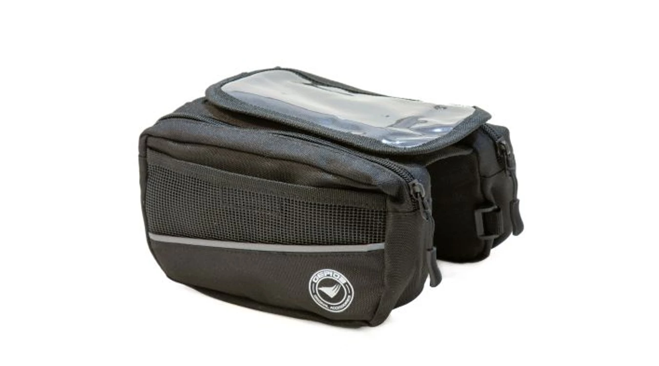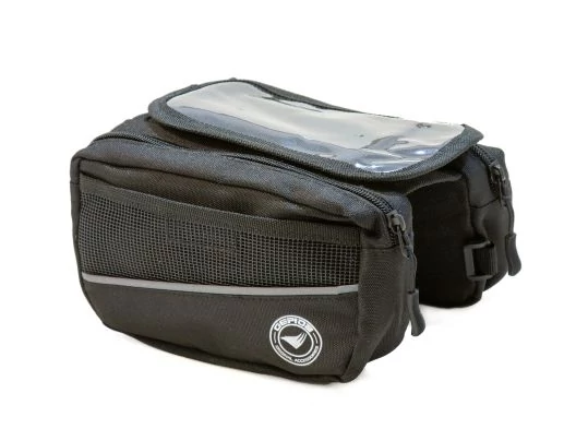 Űrtartalom: 0,9 l - 3M fényvisszaverő szegély - Vízlepergető alapanyag (Polyester 600D) - Erősített varrások - Helyet biztosít a kulcsok, pénz és a személyes tárgyak számára - Két oldalzseb belső kis rekesszel - Átlátszó felső rész az okostelefonok számára, 5,5 hüvelykes kijelző méretig - Minden kerékpárra könnyen fel- és leszerelhető