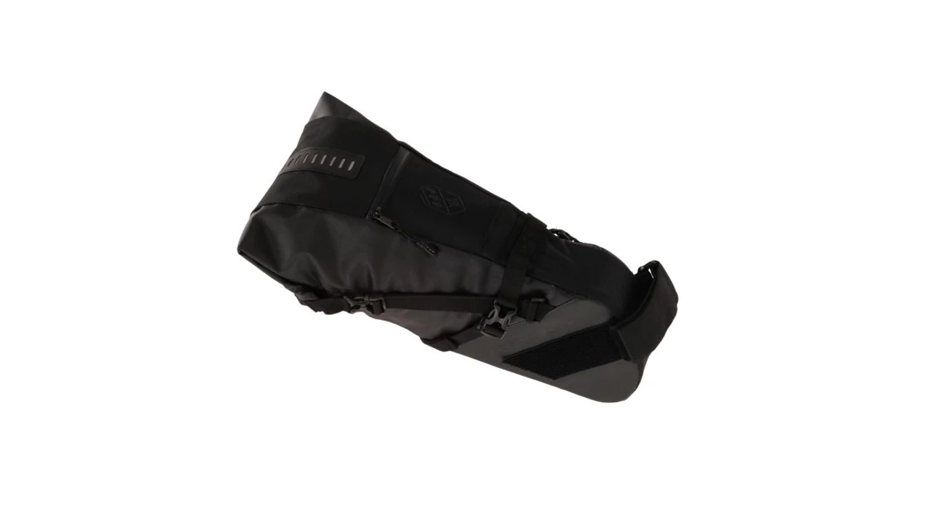 Nylon, expedition saddle bag can be attached to the saddle rail and also serves as a mudguard. The main pocket with a capacity of up to 7L will accommodate the most necessary stuff for every long trip. Low weight, stable fastening and waterproof construction ensure the safety of transported goods.