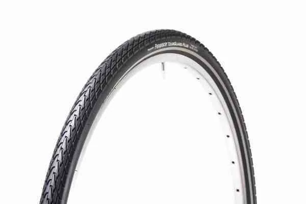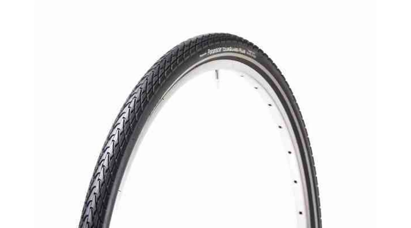 A Tourguard Plus egy megbízható, kiváló ár-érték arányú városi és túra gumi. A gumi teljes felületét védő nylon defektgátló rendszer védi a gumit a szúrásoktól. Vastagított futófelület és az alatta elhelyezett extra gumi réteg növeli tovább a defektállóságot. A nedves időben is kiváló mintázatával és az oldalán elhelyezett fényvisszaverő szalaggal teszi a kerékpározást biztonságosabbá. - Pereme: acél - Méret: 700x42C (42-622) - *Súly: 1080g - Futófelület színe: fekete