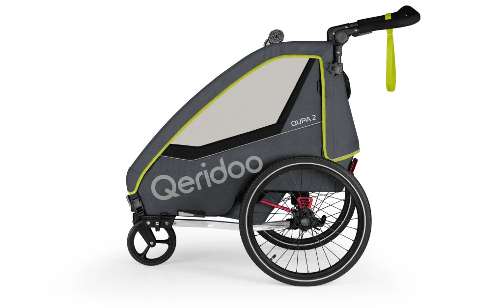 Polisport gyerek utánfutó max 2 gyermek szállítására, rugós lengéscsillapítás, 2 kerékpár adapterrel a csomagban, futó-szett nélkül