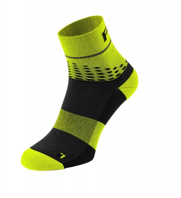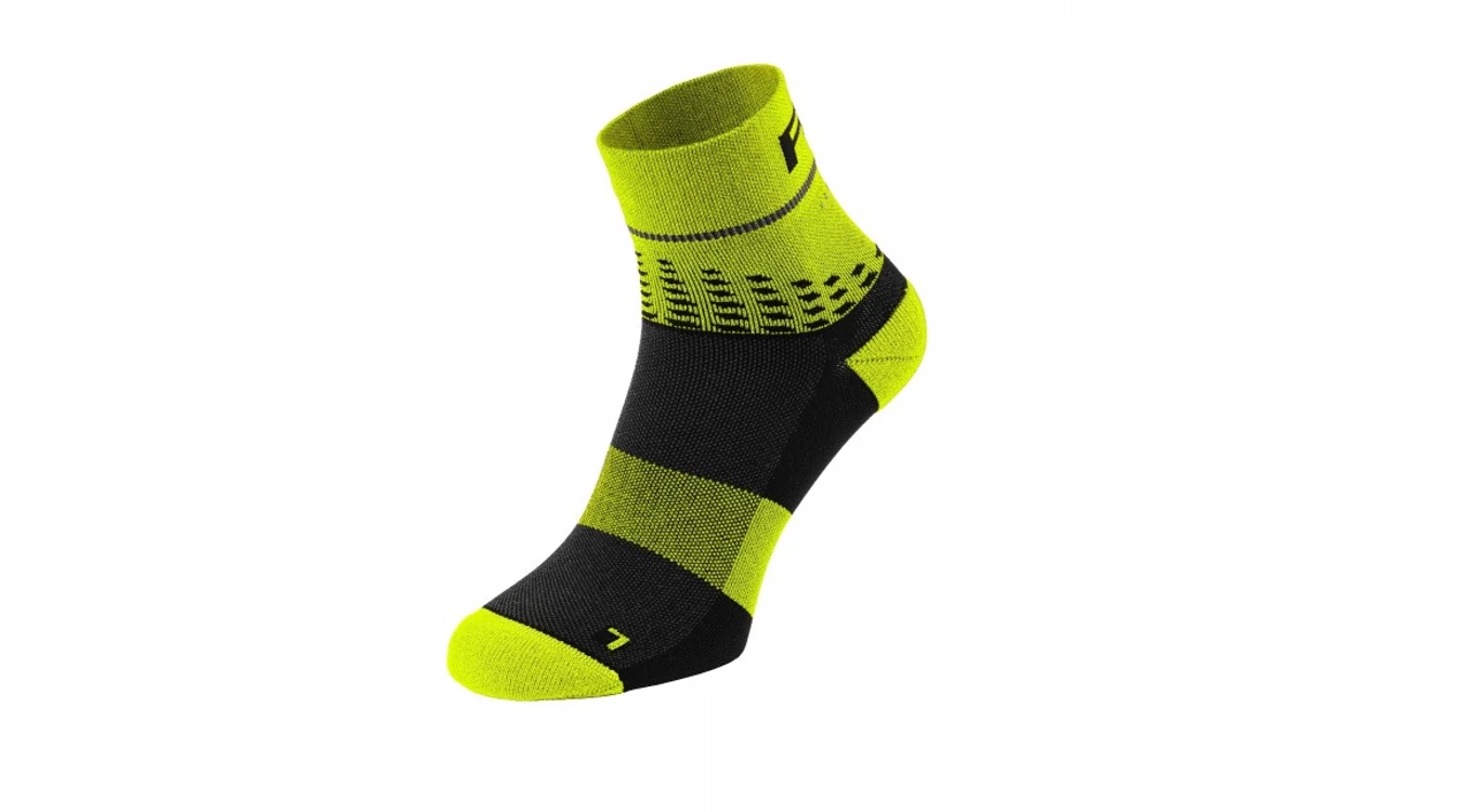 Sportzokni fényvisszaverő elemekkel, amelyek növelik a láthatóságot és a biztonságot. A Q-SKIN® anyag egy poliamid 6.6 szál, amelybe ezüstionok kerülnek be közvetlenül a fonás során, ami korlátozza a baktériumok szaporodását és megakadályozza a testszag kialakulását. A Q-SKIN® gondoskodik a bőrről, és viselőjének légáteresztő képességet, frissességet, higiéniát és kényelmet biztosít.