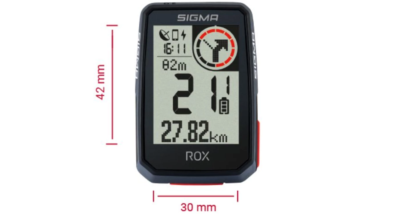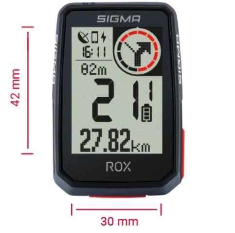 Nagyméretű kijelző (30x42 mm - 2") jól olvasható, nagy számokkal. Innovatív iránymutató navigáció: piros kör jelzi a következő irányváltás távolságát. A Sigma Ride App-pal személyre szabhatóak a kijelzőn megjelenített adatok 6 változatban.