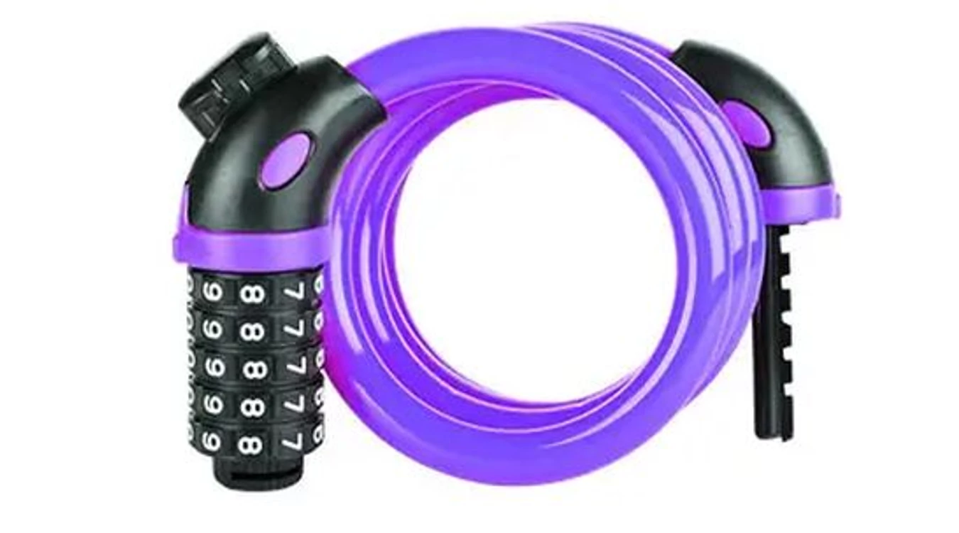 SODROTT ACÉL KÁBELZÁR 12X1200MM TETSZŐLEGESEN BEÁLLÍTHATÓ 5 SZÁMJEGYŰ KÓDDAL ÉS NYEREGCSŐRE SZERELHETŐ TARTÓVAL SÚLY: 400 GRAMM