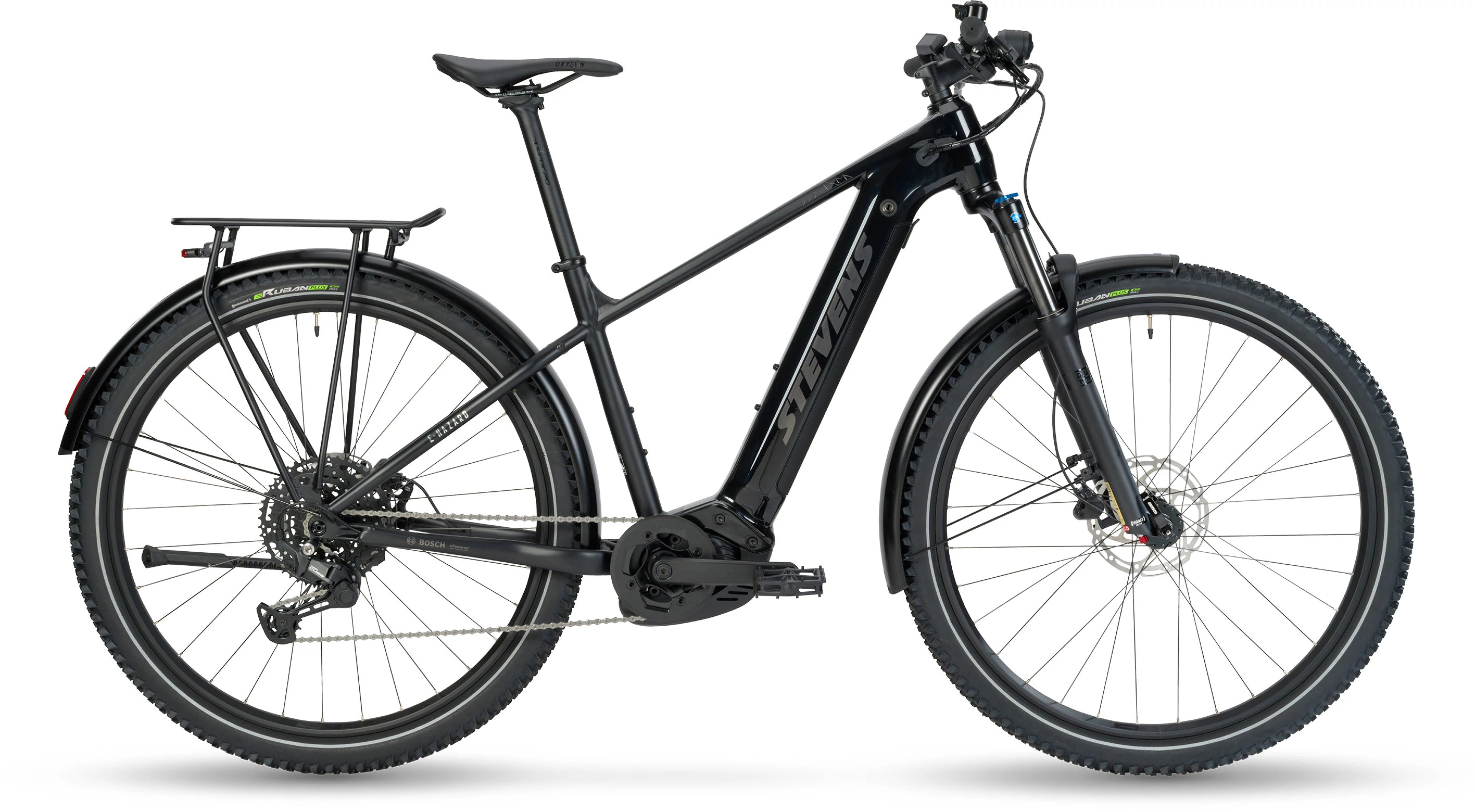 Az E-Hazard az ideális e-crossover mindazok számára, akik olyan kerékpárt keresnek, amely bőséges rugóúttal, optimális mindennapi felszereltséggel és nagyszerű vezetési élménnyel szolgál még terepösvényeken is. A nagy teljesítményű Bosch G4 Performance Line CX hajtást egy tartós PowerTube 500 Wh akkumulátor táplálja, míg az új, kompakt Bosch Purion 200 kijelző minden fontos információt megjelenít az utazásról. És hogy gondtalanul, hosszú ideig úton lehessen, a STEVENS mérnökei az E-Hazardot az új, rendkívül tartós Shimano CUES hajtással látták el, Linkglide technológiával.