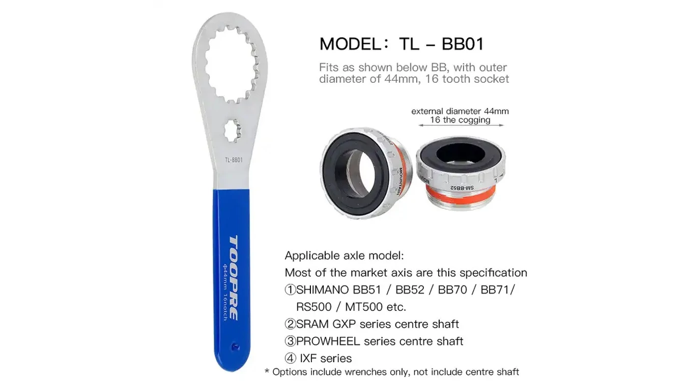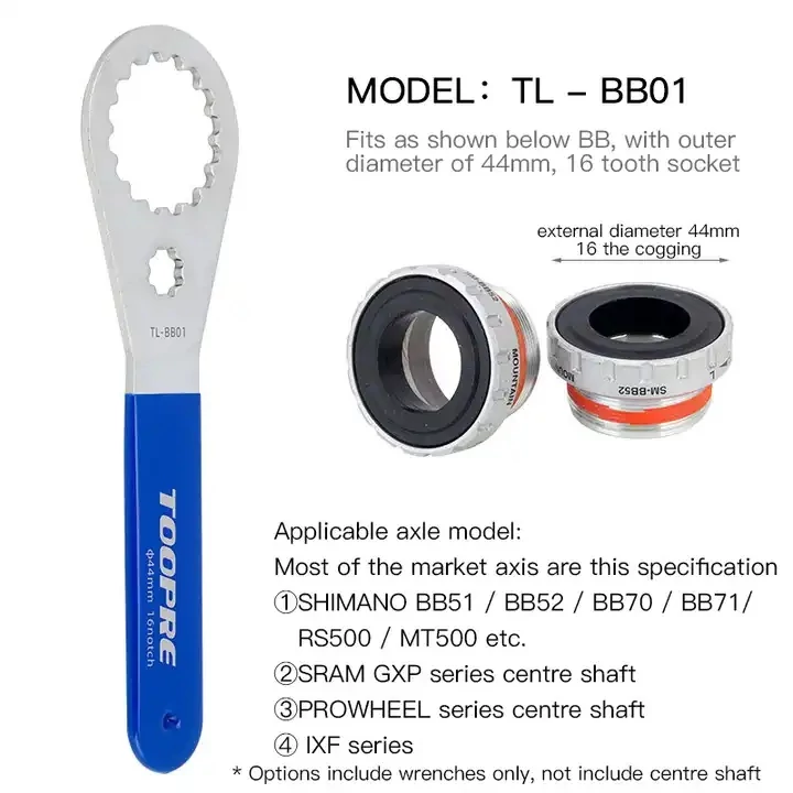GUMINYELŰ, ALUMÍNIUM, INTEGRÁLT BB44-16 KÖZÉPCSAPÁGY SZERSZÁM. ALKALMAZHATÓ: SHIMANOBB51; BB52; BB70; BB71; RS500; MT500; SRAM GXP; PROWHEEL; IXF