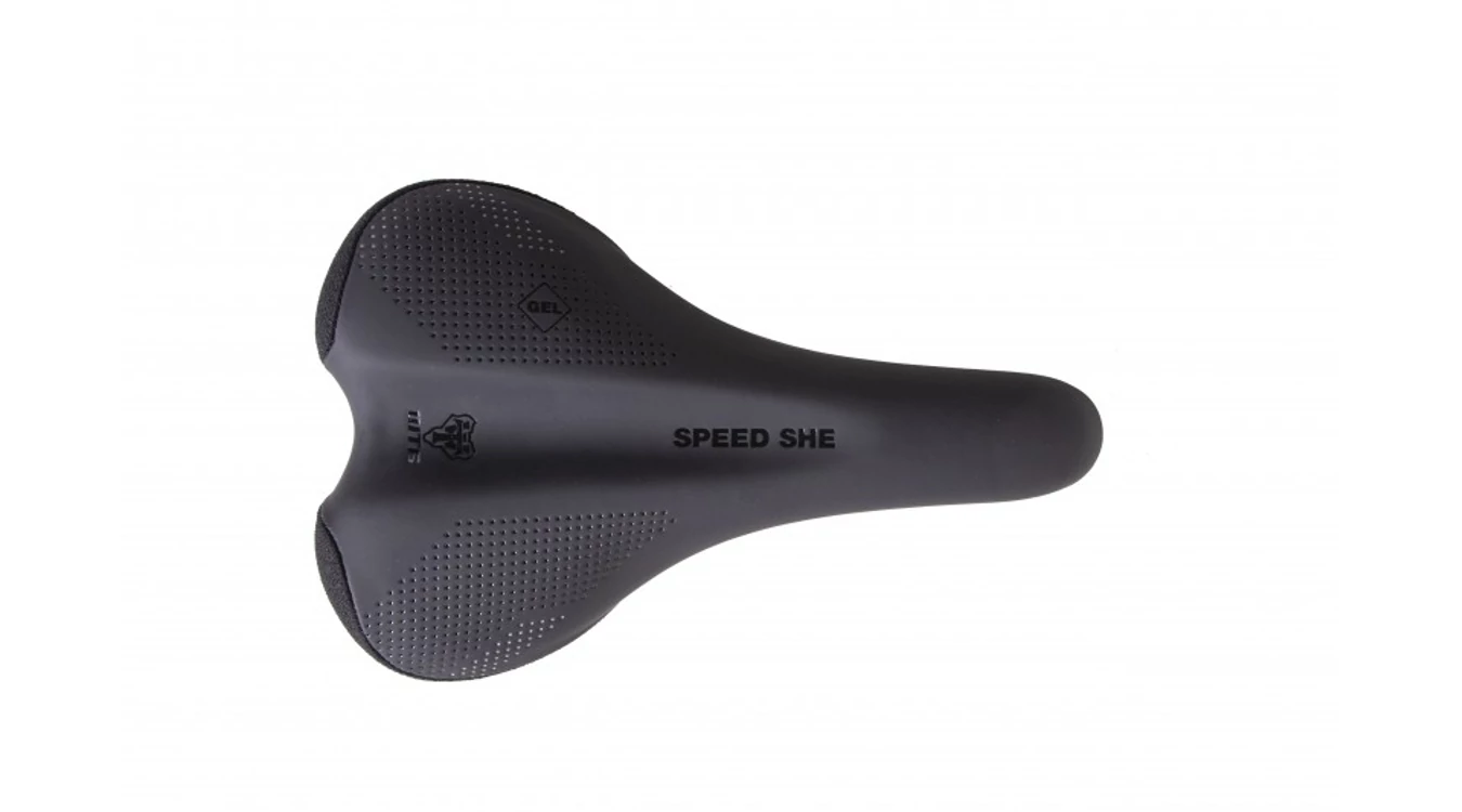 Ergonómikus formájával, finom vonalaival és alacsony profilú varrásával ez a női specifikus nyereg az egyik legnépszerűbb darab. Átlagos méretei és lekerekített formája a Speed She-t könnyen használható termékké teszi.